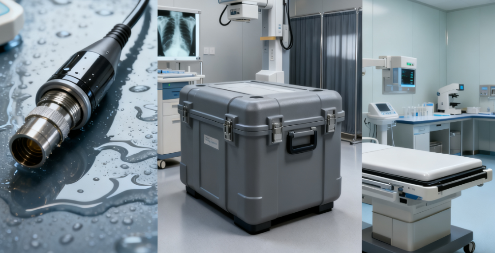 - Moisture-rich areas (e.g., endoscopy suites): require hydrolysis-resistant materials like PEEK or certain polyamides.